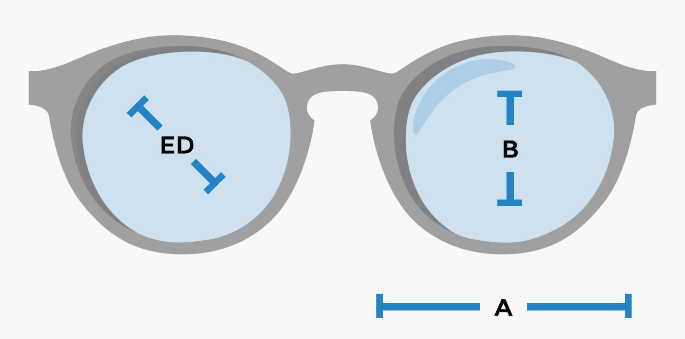 When purchasing glasses online, there are two measurements that are useful in helping you choose the best frame. The first is “total width” which refers to the overall width of the front of your frames (in millimeters). The second is “lens depth” which is simply the depth of the lens (also in millimeters). You won’t find these measurements on your existing frames, but you can easily measure them at home with a ruler.