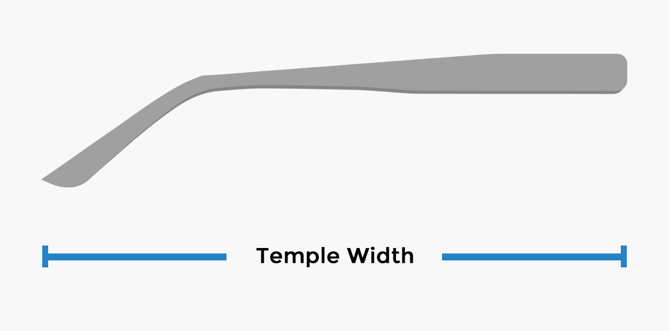 It is measured from each screw to the temple tip, along with the bend that sits on the ear.